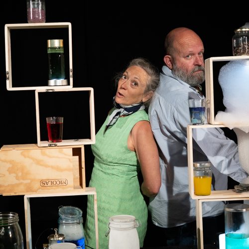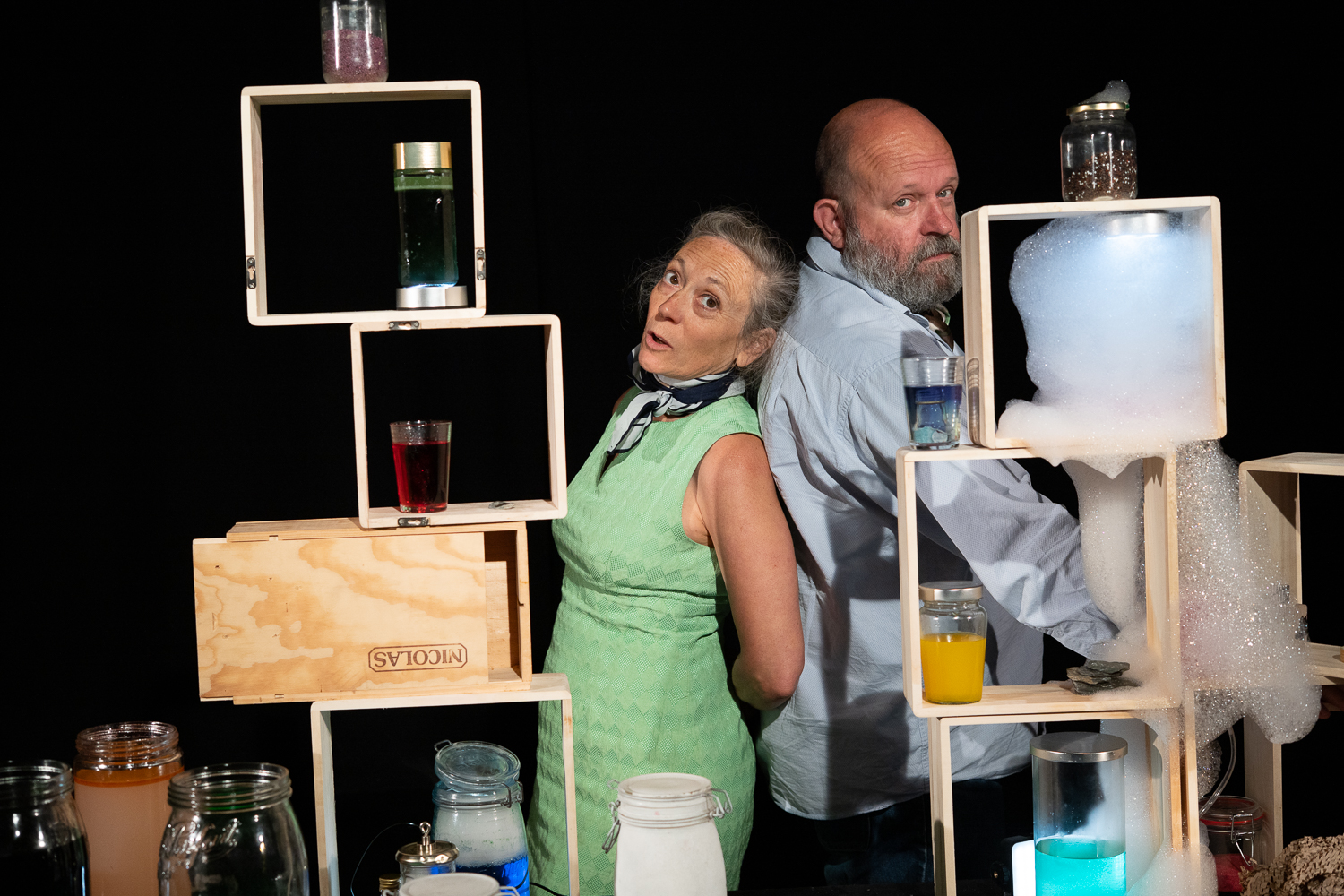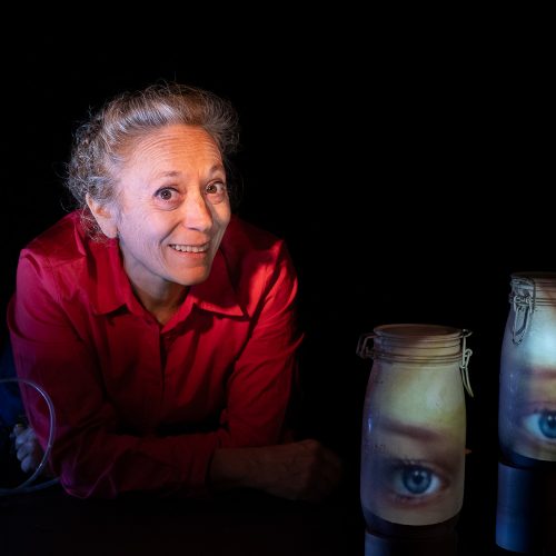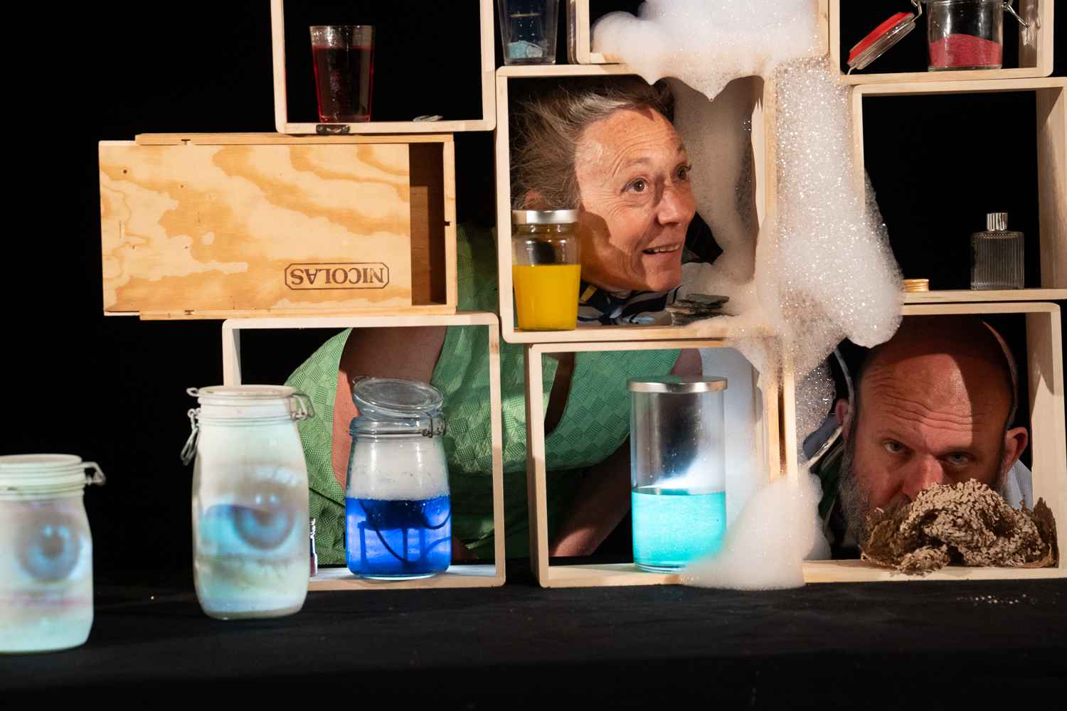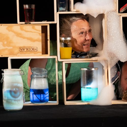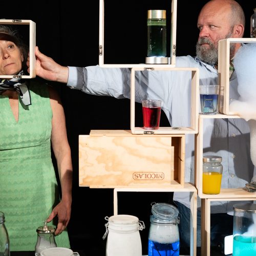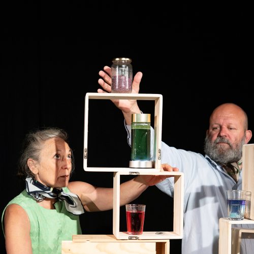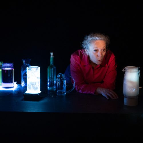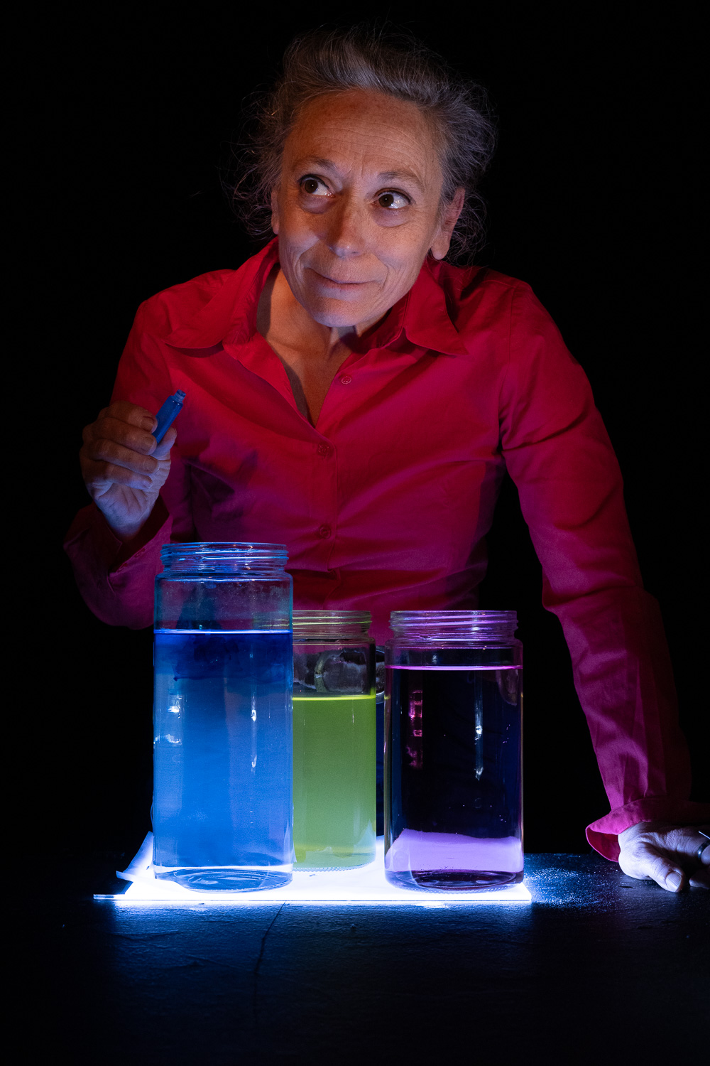 J’ai envie de travailler sur les fluides, des matières en mouvement. Du tissus peut-être, des voiles, mais aussi des liquides. J'imagine un meuble empli d’étagères avec des bocaux, des couleurs, des jeux de lumière mettant en valeur les liquides. Un peu comme un meuble d'apothicaire qui serait modulable en fonction des scènes et des images venant se confronter au récit.
